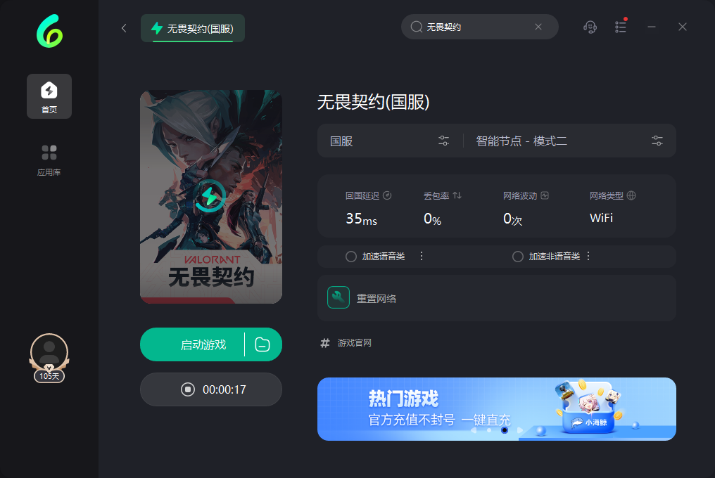 很多玩家玩游戏的时候遇到高延迟的问题都是网络问题,像海外玩家玩国服的话更是容易遇到高延迟的问题,这里可以使用Sixfast回国加速器进行加速,即可优化网络,有效解决无畏契约卡顿、延迟高、跳ping、掉帧等问题。没有加速时长的玩家也不用担心,手机端用户可以在Sixfast【我的】中点击【续费会员】兑换码内填【six4】,电脑端在Sixfast左侧【会员充值】找到【卡券兑换】填【six4】,或者直接在Sixfast官网注册登录后,在【个人中心】【兑换码】处填【six4】就能领取免费加速时长了