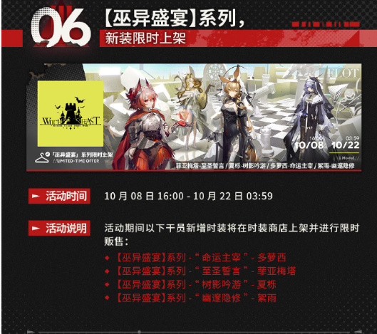 【黑键】(第三件)、【菲亚梅塔】(第二件)、【号角】、【火哨】、【灰毫】、【戴菲恩】、【维荻】