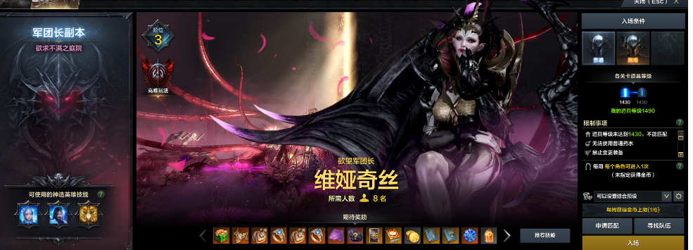 通关维娅奇丝副本将获得欲望之翼,可以在大城市的[制作军团长装备]系统角色处兑换遗物级别的装备