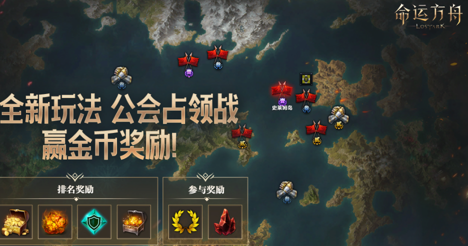 公会战奖励主要分为参与奖励和排名奖励,参与奖励主要为公会赤石和贡献度,排名奖励包含公会赤石及公会经验值。占领战中还可根据公会排名获得金币奖励。