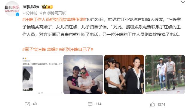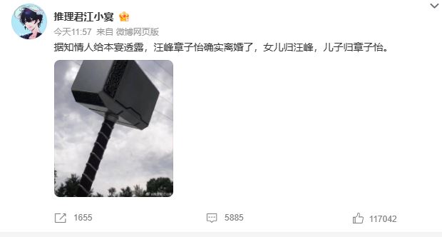 今天中午,一个词条冲上了微博头条热搜,内容是:汪峰章子怡已离婚。