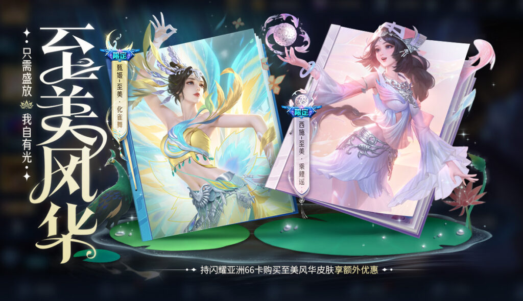 全新至美风华皮肤系列上线,我们以民间经典传说为灵感来源,与大师共创,将天马行空的想象落笔成形,为西施和甄姬打造了寄托东方女性精神的全新形象,希望通过至美风华系列的美学呈现,为玩家们带来充满东方特色的视觉体验。