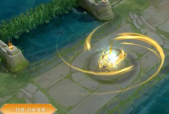 当曹操释放他的第三技能时,黄色的能量会旋转并汇聚到他的身上。接着,曹操的身体和手中的网球拍上会出现黄色的火焰特效,同时他的攻击也会得到增强效果。
