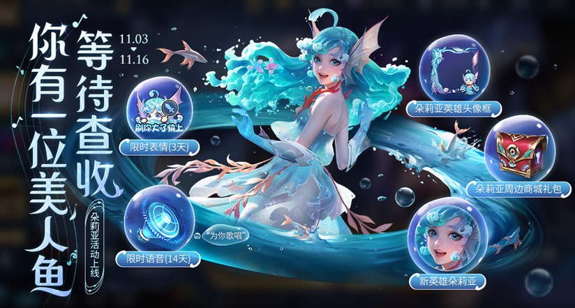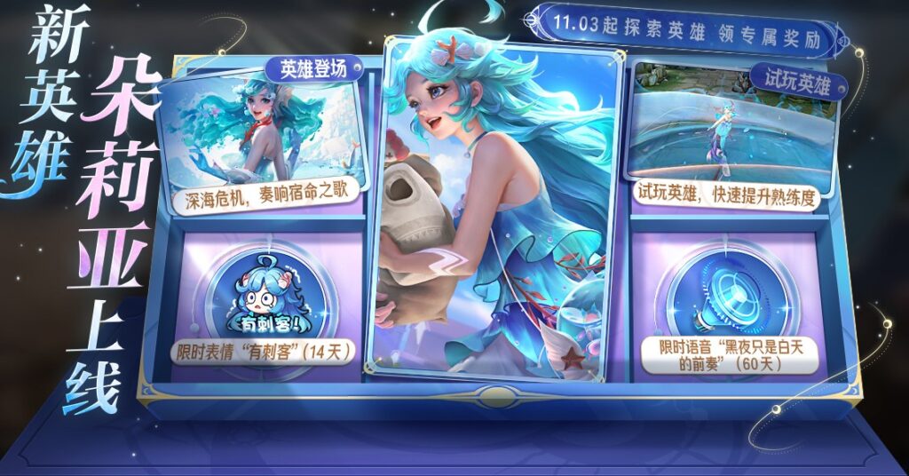 11月3日,新英雄朵莉亚加入。此外,参与“海螺的声音”活动,玩家可以免费获得该英雄。