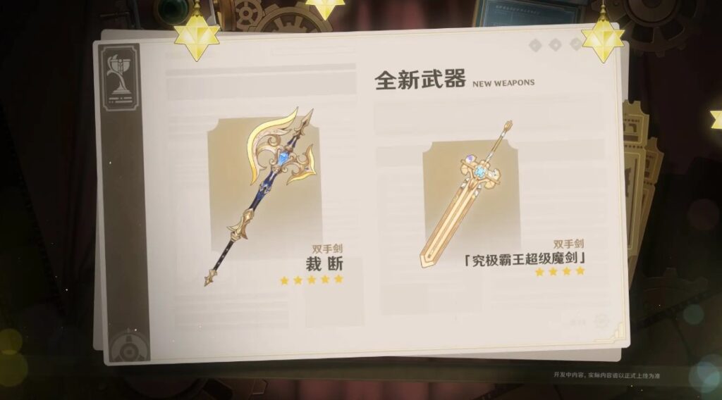 全新武器「双手剑 · 裁断」、「究极霸王超级魔剑」开放获取。