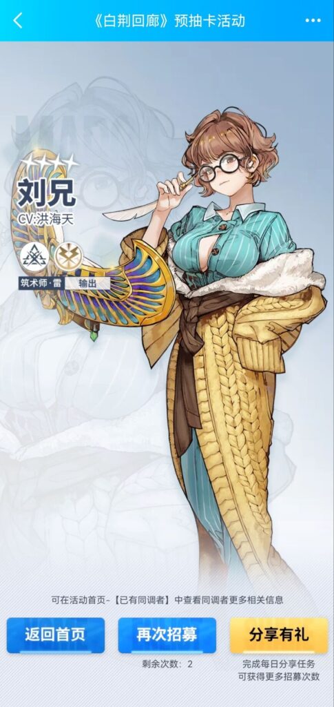 通过官方给出的传送门(用手机打开)就可以进行预约抽卡互动,每位用户通过完成任务可获得招募次数奖励,用户可使用招募次数进行招募获取同调者,最终可从已招募到的同调者中选择其中1名作为活动奖励并带入游戏。