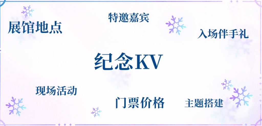 线下的展馆地点,特邀嘉宾,活动主题,发布纪念KV,门票价格,以及伴手礼的消息!