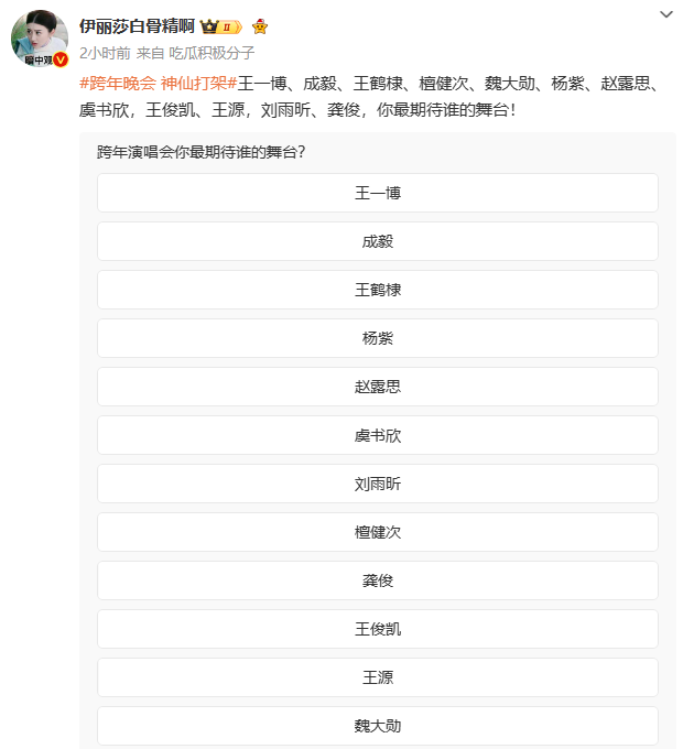 那么你最喜欢的明星在哪里呢,快上微博搜索关键词#跨年晚会 神仙打架#