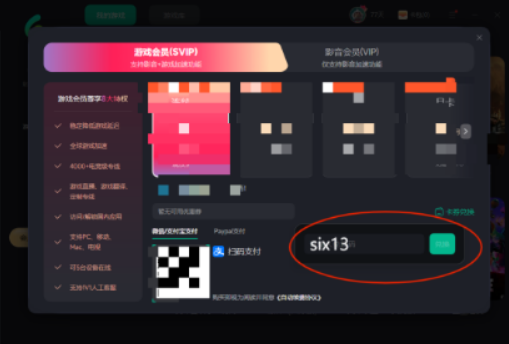 在如图所示页面输入专属兑换码【six13】即可领取免费会员!