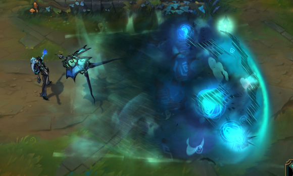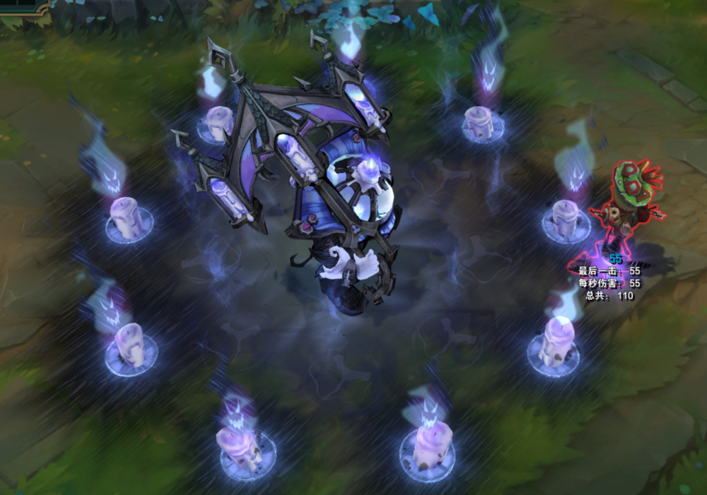 【R】每秒伤害:20/38/56/74/92/110+40%法术强度→20/36/52/68/84/100+35%法术强度