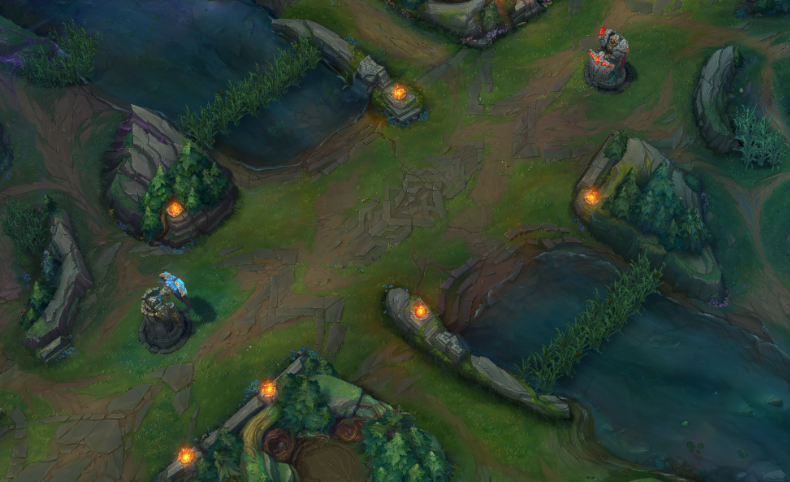 设计师对于地图的改动祈愿是,让单人路在面对打野(或者说游走)时多一些保护。大部分情况下,抓人作为游戏前期的主要手段,效果有些太强了。但每条分路调整的原因略有不同。