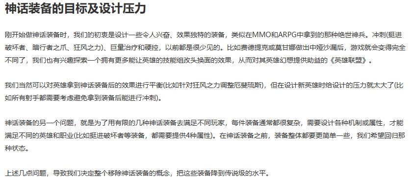 14.1带来的最大的一个改动就是神话装备系统的移除,神话装备的设计是充满压力的,其唯一性局限了玩家和设计师的思路,每件装备通常都很复杂,需要设计各种机制和属性才能满足