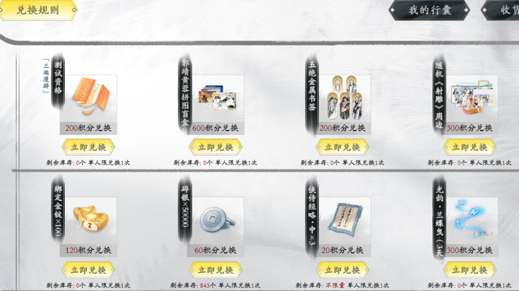 还可以用大量积分兑换官方网站剩余的道具