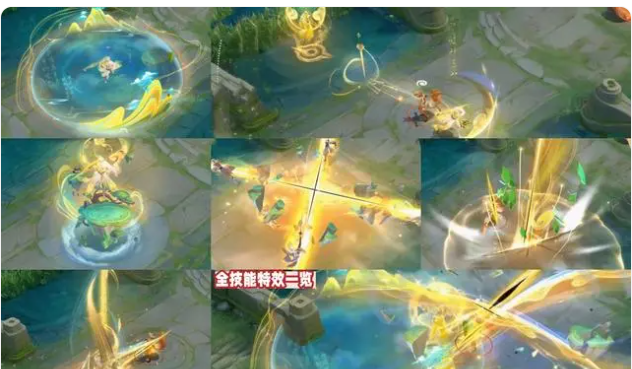二技能:金色能量丝线连绵环绕水面,倒映出琉璃幻景;在圈中移动时,可以从不同角度观看盛景奇观;