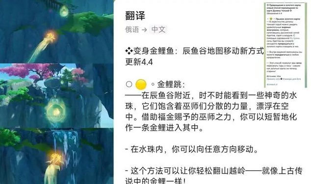 在原神4.4版本中,将会有一个新的地图——沉玉谷。而在这个新地图中,玩家们将能够通过变身金鲤鱼的方式来进行移动。可以说,这是一个非常有趣的创意,相信会给玩家们带来全新的体验。