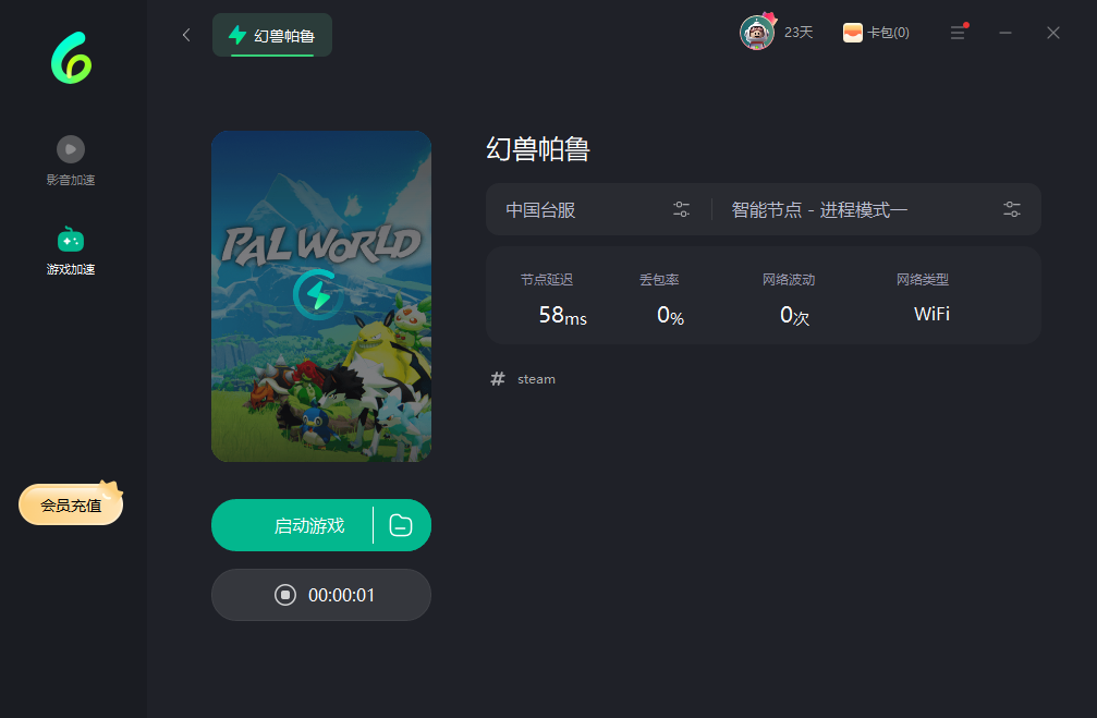 下载并打开sixfast(六毫秒),使用兑换码【six13】免费领取会员后找到相应游戏一键加速即可!