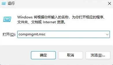 在键盘上按win+R打开运行对话框,输入【compmgmt.msc】后回车