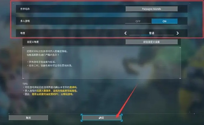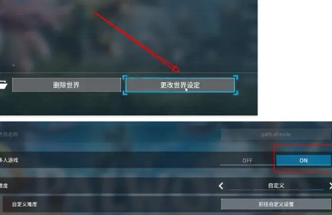 再次点击开始游戏,点击更改设定,再点击ON打开多人游戏,点击确定后即可进入游戏
