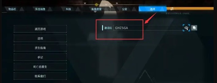 然后在按ESC弹出菜单,点击上面的选项,将邀请码复制给好友