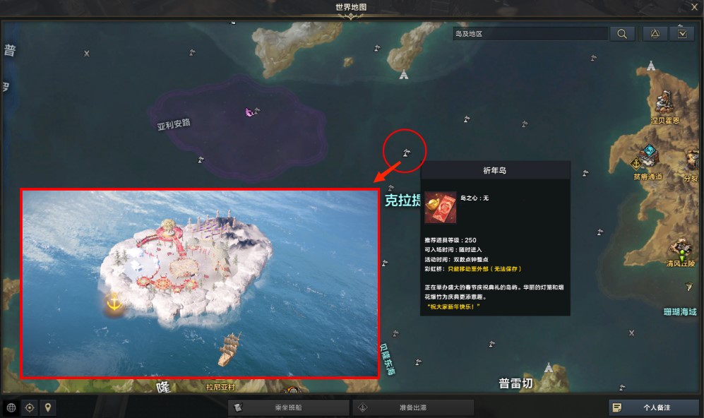 岛屿位置:祈年岛位于克拉提尔大洋之上,冒险家可以选择从贝隆北部的科罗纳港或者阿尔泰因的贫瘠通道出发可以较快抵达。