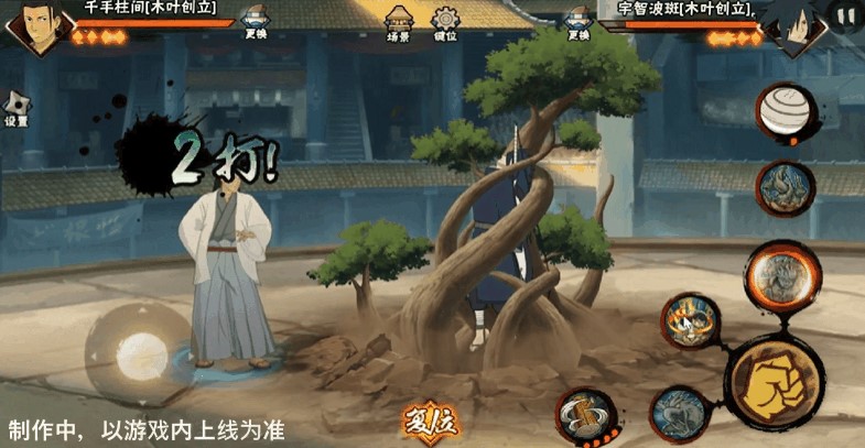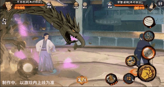 如果命中目标,柱间向后撤步,原地留下一个木分身,木分身变为蜿蜒树木抓取目标。