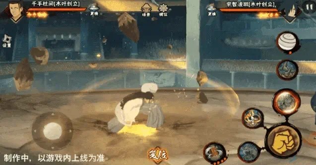 当柱间有4个奥义点时,可以点击奥义技能释放“小奥义:木人之术”,施展榜排之术防御,随后召唤出魁梧的木人,同时对周围目标进行炸气打击;木人状态下的柱间会获得全新的普攻和技能表现,并且全程拥有金刚体,但不可使用通灵秘卷。