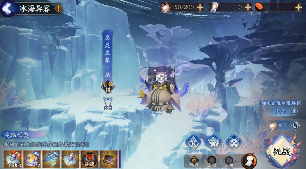一阶段期间,消耗「体力」或者「鲛人珠」开启挑战,挑战成功即可获得「千汐贝」、「海兽羁绊」、「潮汐之力」等奖励。每日前50次挑战将掉落额外的「海兽羁绊」和「潮汐之力」。