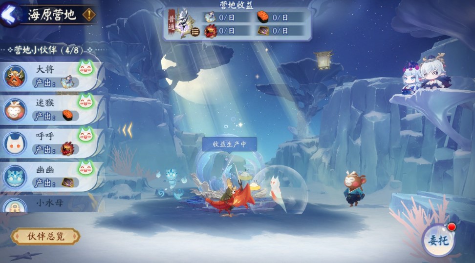 通过参与玩法获得的「海兽羁绊」可用于培养营地海兽小伙伴的等级,提升放置奖励。在此处查看收集到的所有海兽伙伴,并完成任务委托。