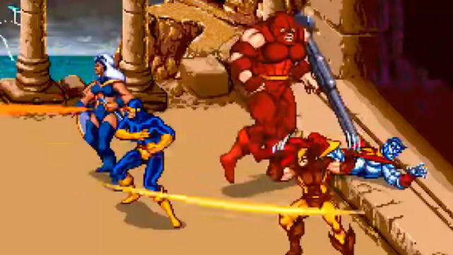 这款经典街机游戏一经面世就大受欢迎,豪华版的机柜能同时在两个屏幕上玩六个角色,每个角色都能使用各自的特殊能力。在预渲染CG来临之前的时代,这款街机的画面表现还是很不错的。