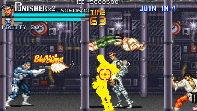 制裁者是漫威最冷酷的anti英雄。在这款 1993 年世嘉推出的经典街机中,P1可以扮演制裁者,P2可以扮演 90 年代的神盾局局长,惩治街头暴徒和超级罪犯。剧情比较忠实于漫画原作,充满暴力元素。
