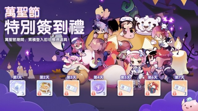 透过日常委托获得糖果,在主城会随机有小朋友来讨糖,每次给小朋友糖果必获得馈赠礼盒,打开会获得万圣节纪念币、限时Buff 道具、恶搞小玩具等奖励。
