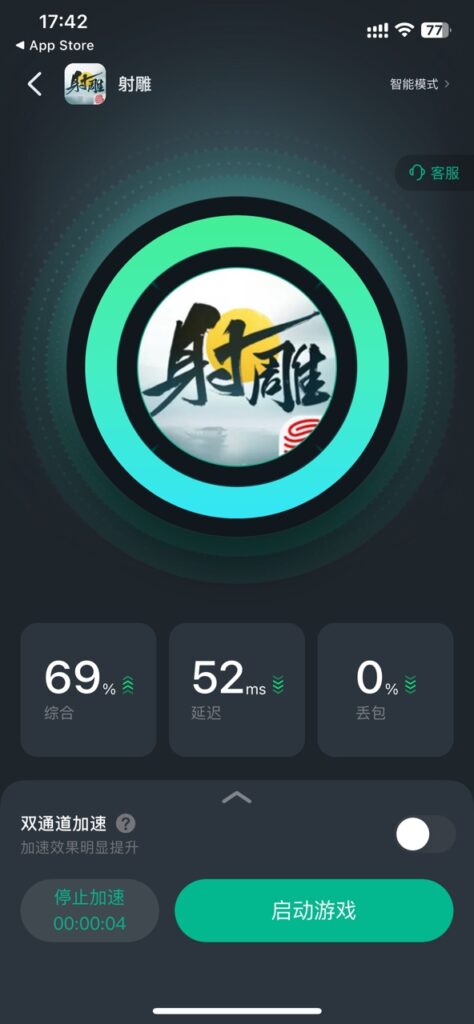 3.在Sixfast游戏库中寻找【射雕】选项,将加速度调至100%即可解除限制。操作完成后,重启软件,即可畅享《射雕》的武侠世界。不要再犹豫,快去体验看看吧!