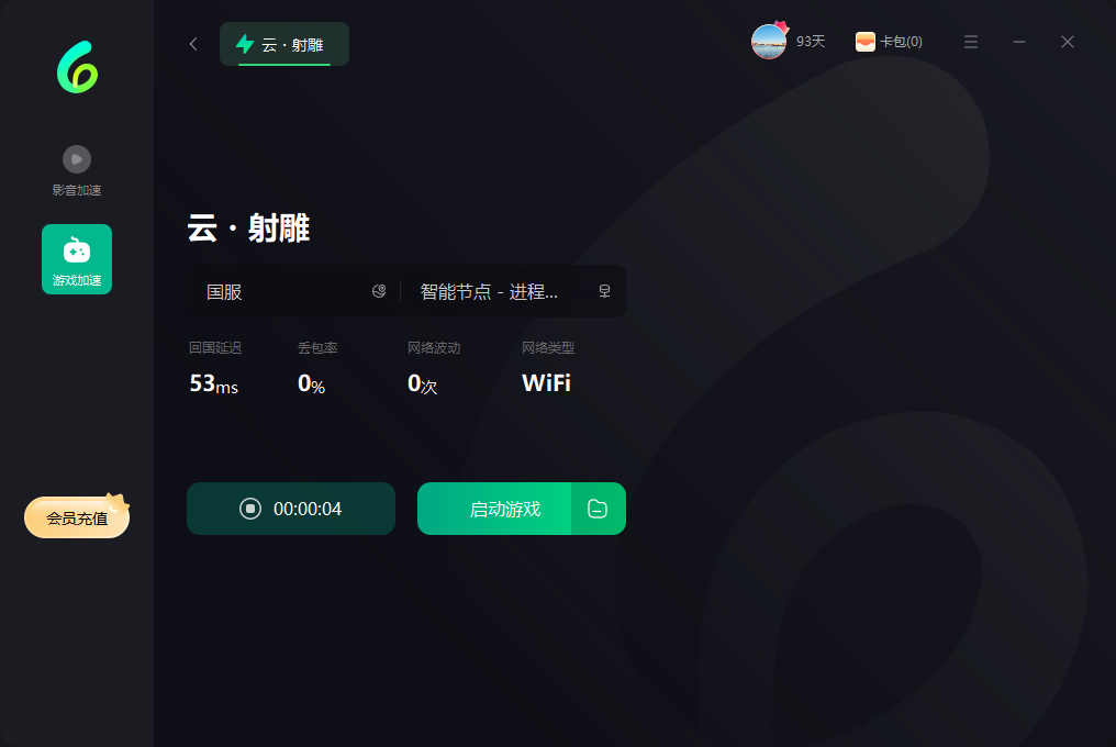 3、在Sixfast游戏库中找到【云·射雕】选项,并将加速度调整到100%,这样就可以顺利解决高延迟、卡顿的问题。完成加速后,重启软件并重新打开游戏,享受流畅的游戏体验。