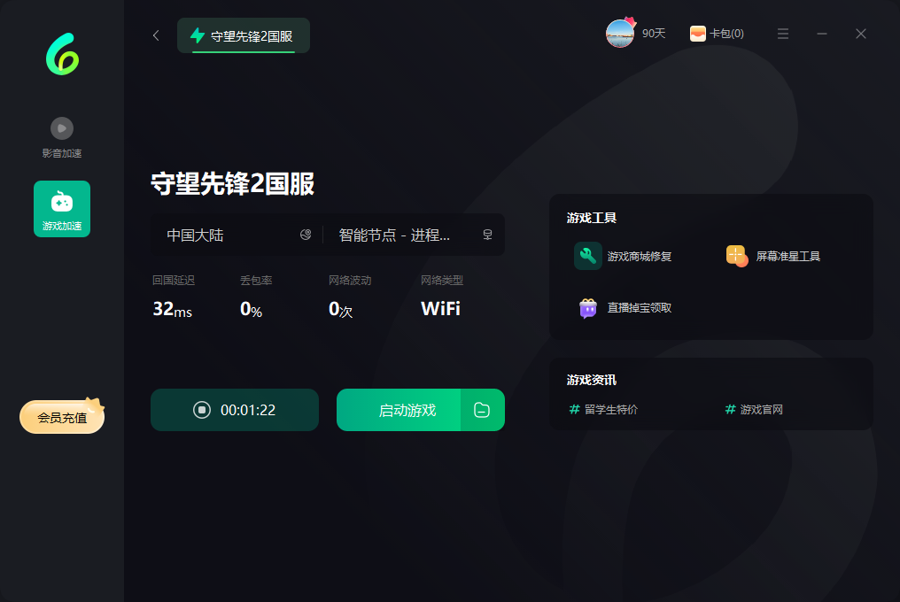 3、在Sixfast游戏库中找到【守望先锋国服】选项,并将加速度调整到100%,这样就可以顺利解决高延迟、卡顿的问题。完成加速后,重启软件并重新打开游戏,享受流畅的游戏体验。