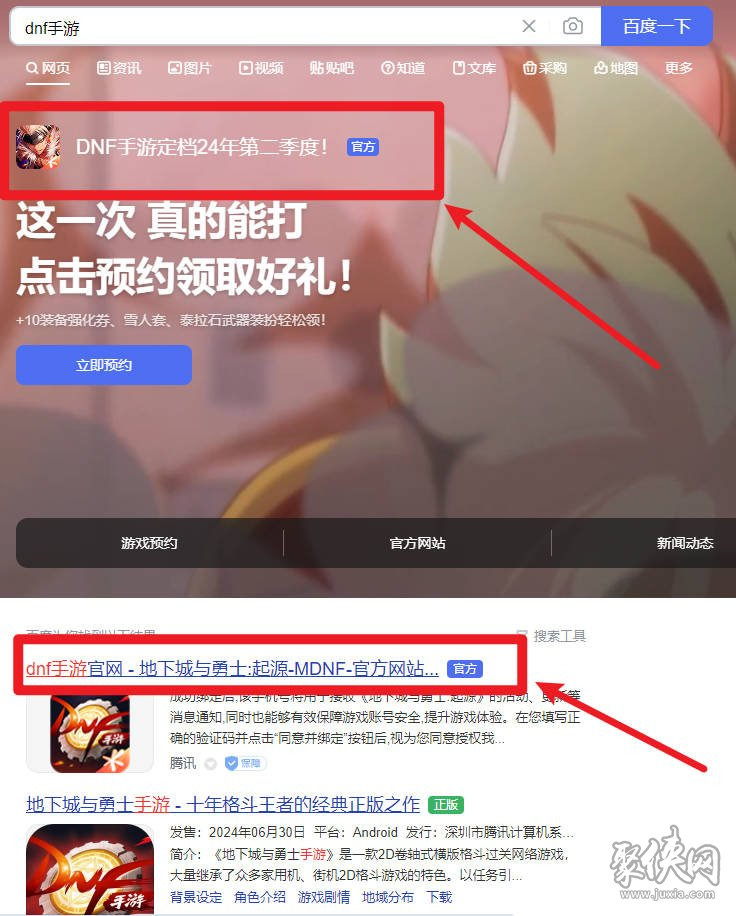 如下图所示,我们首先搜索dnf手游官网。进入dnf手游的官方网站(这2个都是官网)