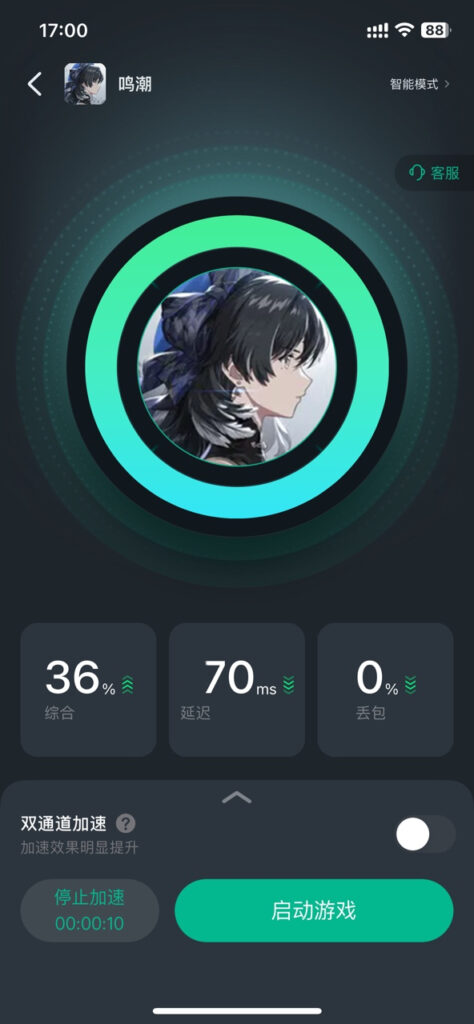 3、在Sixfast回国加速器内找到【鸣潮】,开启加速等待圆圈转到100%以后,重新打开游戏就能和国内玩家一起联机玩超数据世界了!