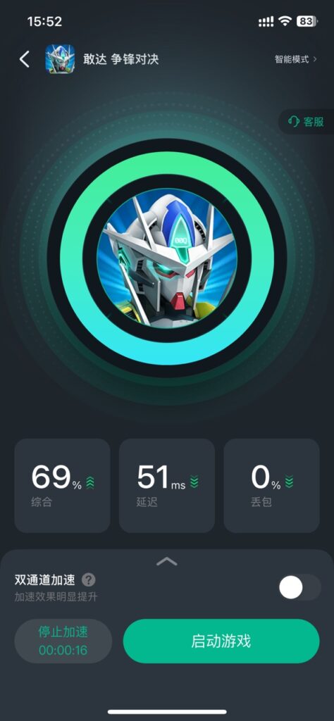 3、在Sixfast回国加速器内找到【敢达争锋相对】,开启加速等待圆圈转到100%以后,重新打开游戏就能和国内玩家一起联机玩敢达争锋相对手游了!
