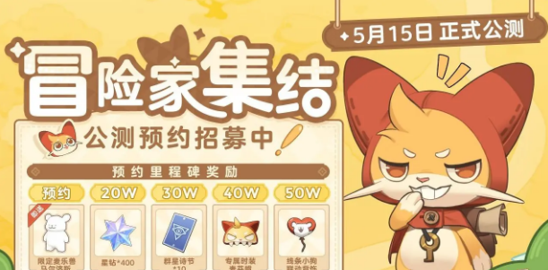 《出发吧麦芬》将于5月15日正式公测!预约就有线条小狗联动萌宠、限定饰品等好礼免费领取,还有丰富的预约里程碑奖励等你领取,还不快集结你的冒险伙伴,一起预约吧!