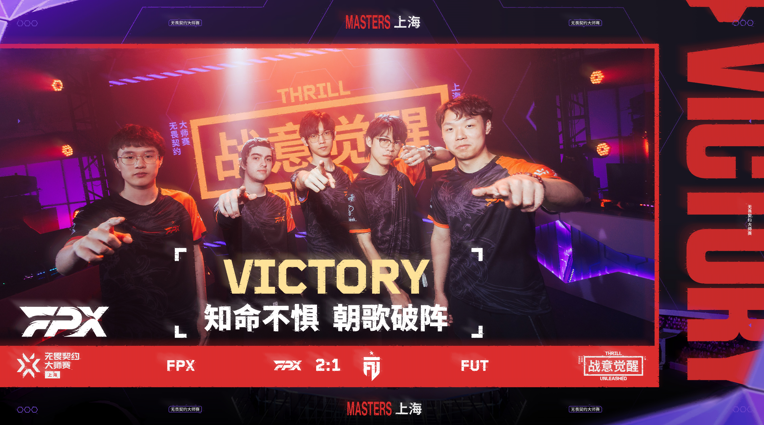 5月23日,首个落地中国的无畏契约国际赛事——上海大师赛在无畏竞技场正式打响。首日比赛中,FPX作为VCT CN赛区的二号种子亮相,以2-1击败EMEA赛区三号种子FUT,为VCT CN赛区赢得首胜,这也是FPX作为CN赛区队伍首次在国际赛舞台取得的大场胜利。
