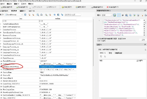 7.找到GameQualitySetting这一项表名,点击后面的值