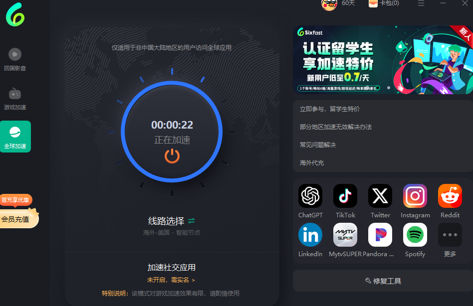 推薦使用Sixfast回國加速器,壹鍵輕松解決版權限制的問題