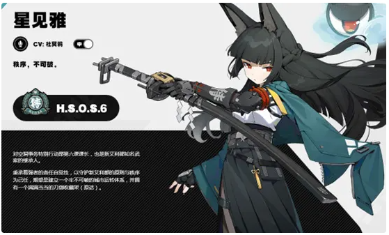动作设计,星见雅也是突出了名字中的“雅”这个字,单手提着太刀亭亭玉立(就是这脸怎么感觉像黑猫),一对兽耳一动一动的,雅致之中透露着一丝可爱在里面,服装也是得大体的长裙,配上大衣,白色的衬衫配上领带,给人一股优雅都市丽人的感觉,可以说设计的十分到位了。