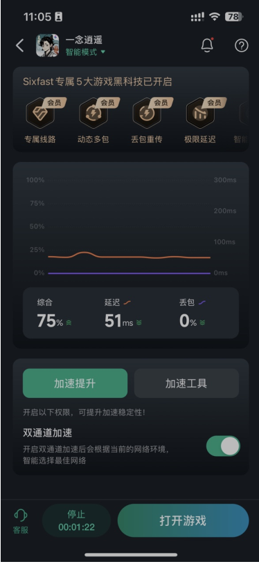 3、列如:在Sixfast回国加速器内找到【一念逍遥】国服国际服都能正常加速,开启加速等待圆圈转到100%以后,再重启游戏就能极大程度降低延迟了!(其他游戏也是一样的操作)