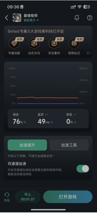 3、列如:在Sixfast回国加速器内找到【最强祖师】国服国际服都能正常加速,开启加速等待圆圈转到100%以后,再重启游戏就能极大程度降低延迟了!(其他游戏也是一样的操作)