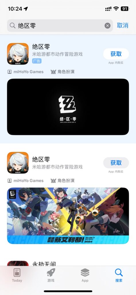 转到国区之后,再搜索“绝区零”,就可以下载了!