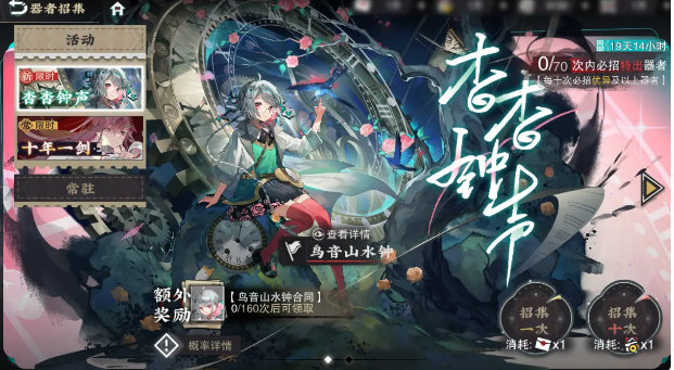 【鸟音山水钟】&【越王勾践剑】双器者活动期间招集概率大幅UP;