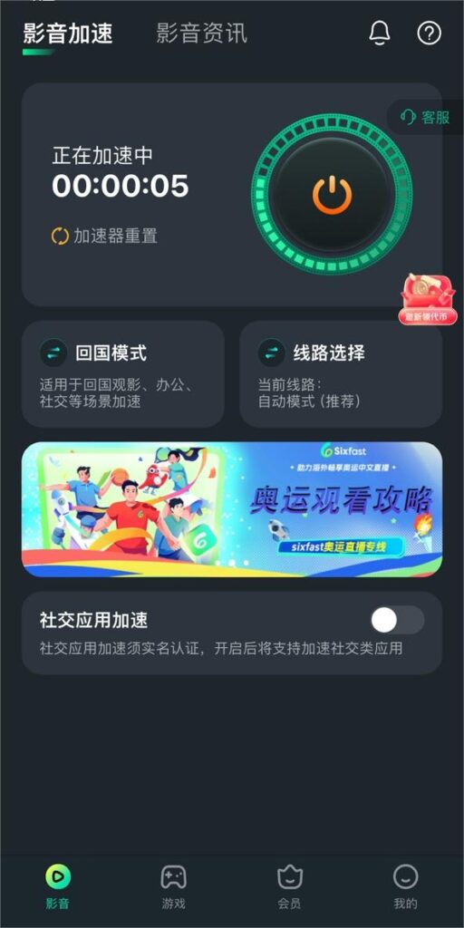 3、在Sixfast库中找到【影音加速】,加速到100%就可以上述问题了,快去试试吧!
