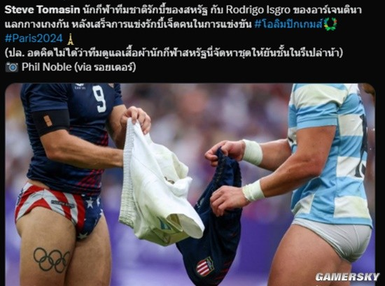 巴黎奥运会男子七人橄榄球赛,27日比赛赛后,美国队的史蒂夫·托马森和阿根廷的罗德里戈·伊斯格罗在赛后交换短裤抓拍爆红全网。
