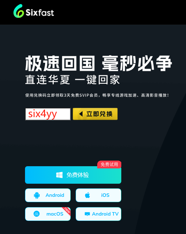 推荐使用Sixfast回国加速器,一键加速影音游戏