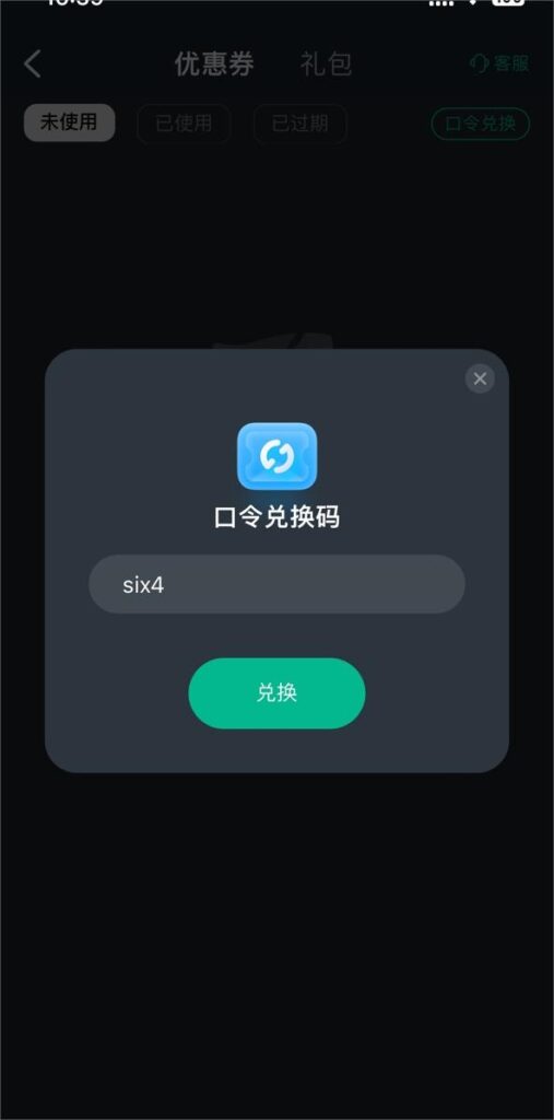 2、下载好后按照提示登录注册,在会员中找到【兑换码】,使用【six4】先领取时长,才能使用软件,也可以直接点击:https://www.sixfast.com/tg-exchange 按照下图所示填写兑换码【six4】,并按照右边步骤注册登录Sixfast,领取时长。